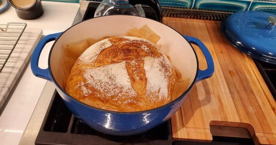 I bought this Dutch oven to start my sourdough journey. It is very easy to clean and works well for making sourdough! It is heavy, but that comes with Dutch ovens! The Amazon Basics Enameled Cast Iron Dutch Oven (6-Quart, Blue) exceeds expectations in every aspect. Its performance, durability, and aesthetic appeal make it a standout product. I highly recommend it to anyone seeking a reliable and affordable Dutch oven!