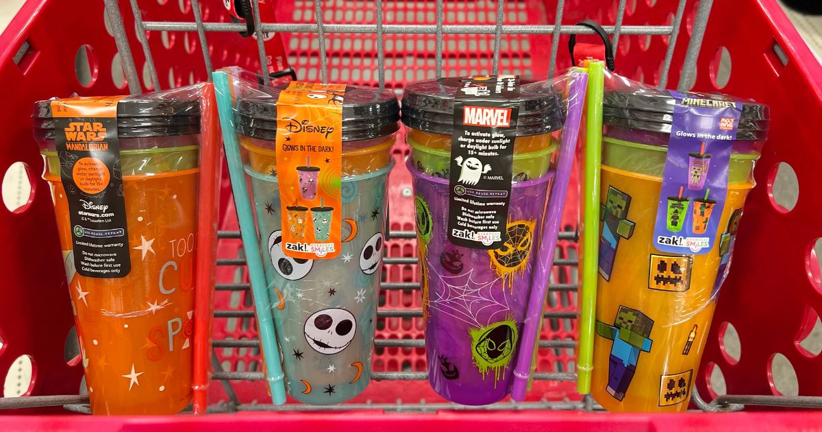 Have you scoped out your Target Halloween section yet? Select stores might have already put out their Zak Halloween cups & other dishware! We spotted the team- and reader-favorite Zak Halloween Glow-in-the-Dark Reusable Cups in adorable 4-packs for just $10!