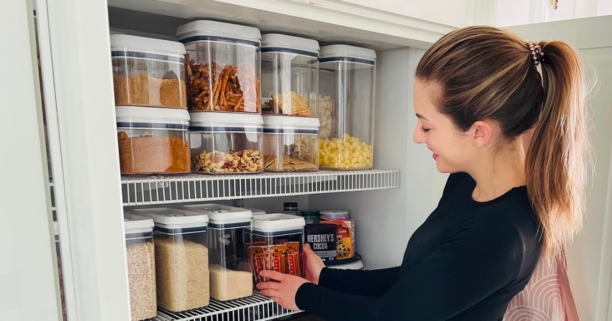 This set includes eight see-through plastic containers each with a flip-buckle lid. The food-grade seal is perfect for storing dry beans, rice, pasta, snacks, cereal, and more. These high-quality containers are very similar the OXO Good Grips version, but at a much more affordable price.