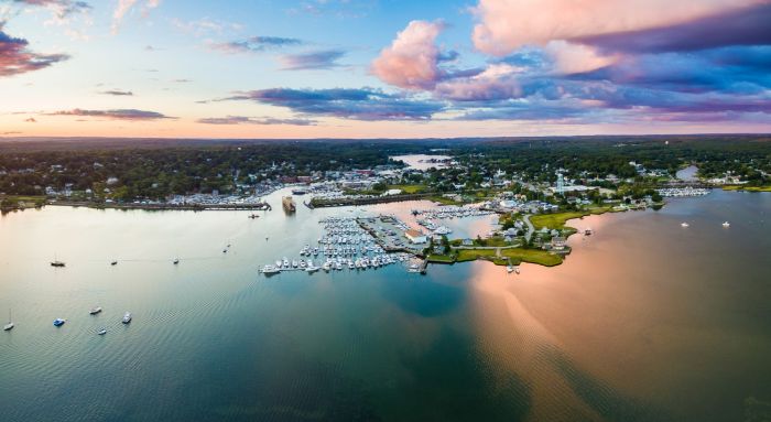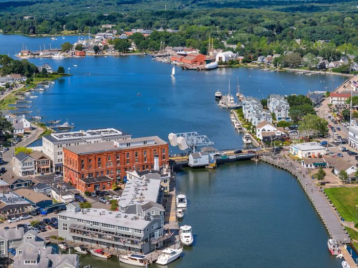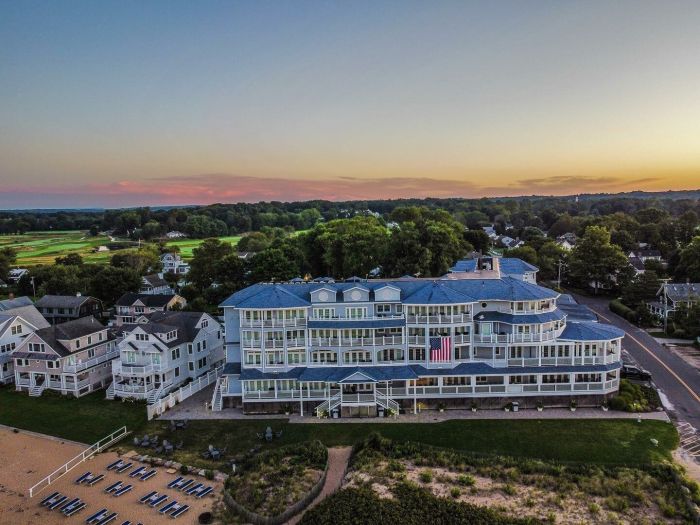 There are plenty of lovely inns and resort to enjoy Connecticut’s coastal lifestyle. Saybrook Point Inn sits at the tip of Old Saybrook, its bright yellow exterior standing out against the deep blues of Long Island Sound. The inn overlooks an active marina, where pleasure and fishing boats come and go throughout the day, their motion visible from every vantage point. The architecture combines maritime charm with clean, modern lines, giving the building a confident presence on the waterfront.