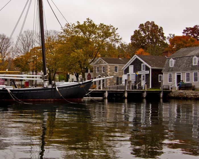 While there, one must visit the Mystic Seaport Museum, an expansive living history museum that recreates a nineteenth-century whaling village. Wooden shipyards and tall ships are open to wander, their rigging visible from across the river. The museum’s centerpiece is the Charles W. Morgan, the last surviving wooden whaleship in the world, carefully restored and open for visitors to step aboard. Around it, craftsmen work in active shipyards using traditional tools and techniques, giving a sense of how vessels were once built by hand along the New England coast.