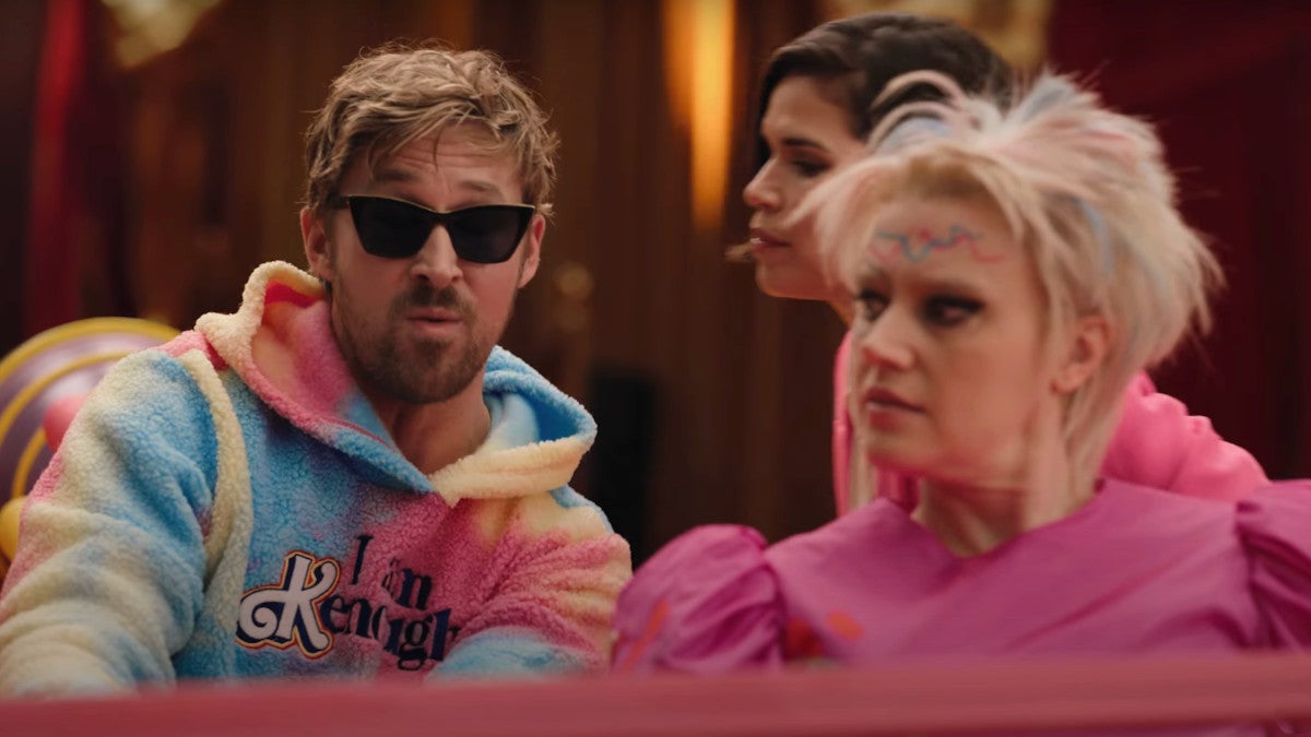 The promo wraps with an appearance from Ken himself, Ryan Gosling, decked out in his “I Am Kenough” hoodie and munching on In ‘n Out. But when he’s informed that Greta Gerwig was not nominated for Best Director, he quite literally freaks out, sending the promo out on a literal high note.