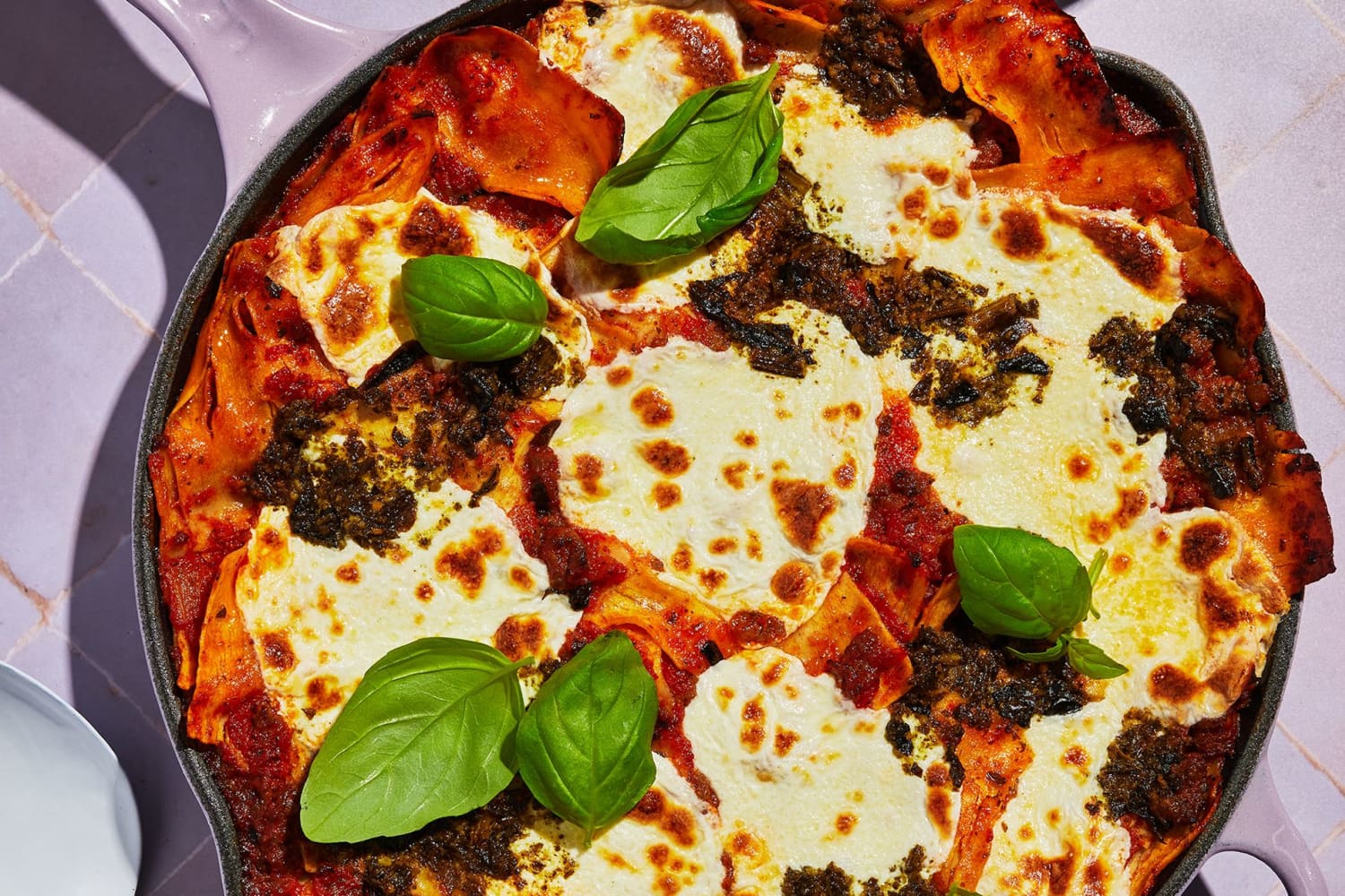 I like to call this my “lazy girl lasagna.” While my Italian grandfather would gasp at the thought of this one-skillet wonder, I know that if he were still alive he’d take one bite and then quickly devour the entire pan.