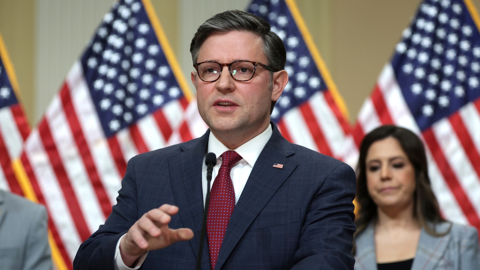 Speaker of the House Rep. Mike Johnson speaks during a news conference at the Cannon House Office Building on Capitol Hill, March 6, 2024, in Washington, D.C.