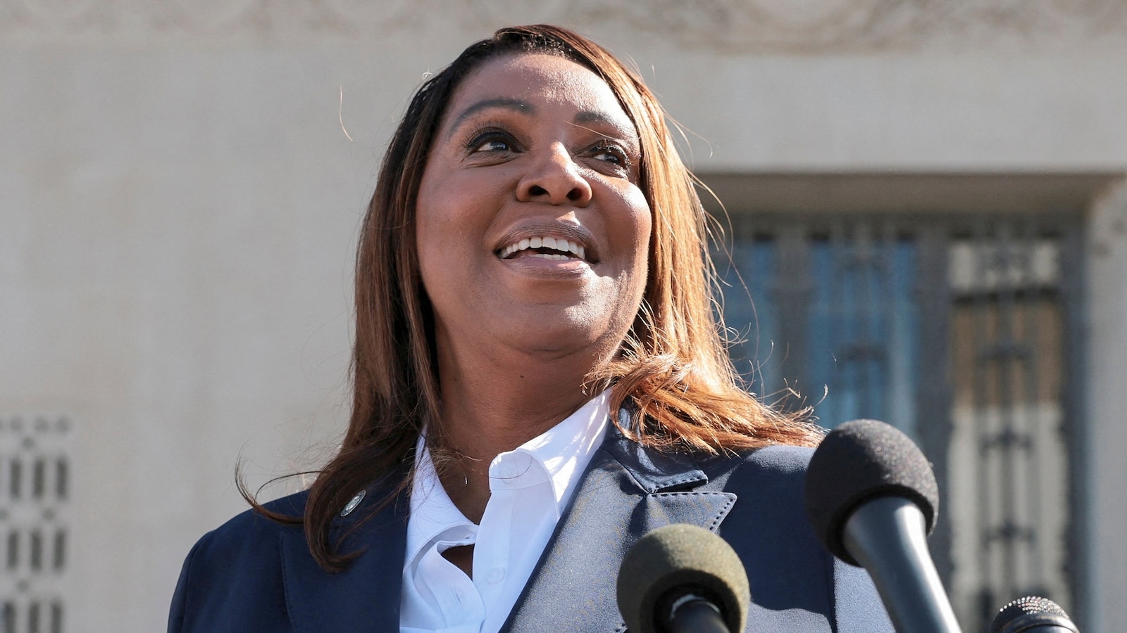 New York Attorney General Letitia James speaks to the media, after she pleaded not guilty to charges that she defrauded her mortgage lender, outside the U.S. District Court for the Eastern District of Virginia, in Norfolk, Va., Oct. 24, 2025.
