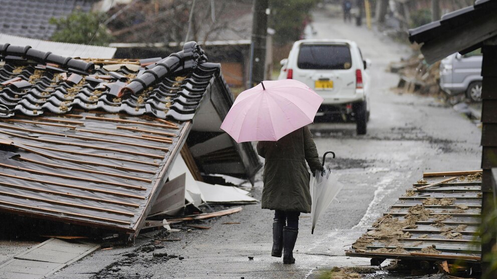 Taiyo Matsushita walked three hours through mud to reach a supermarket in Wajima city to buy food and other supplies for his family. The home where he lives with his wife and four children, and about 20 nearby homes, are among the more than a dozen communities cut off by landslides.