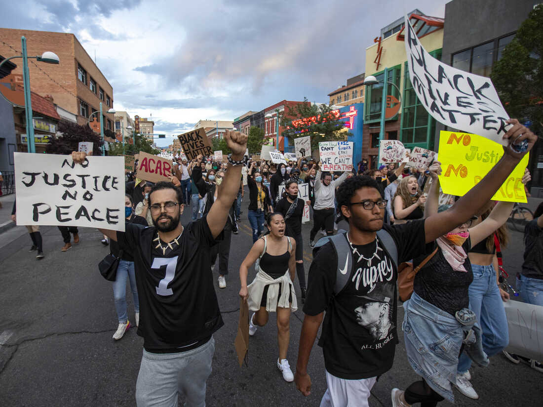 Demonstrators in Albuquerque protest the death of George Floyd on May 31, 2021. The high incidence of police killings in the state has been a topic activists have worked to address for years.