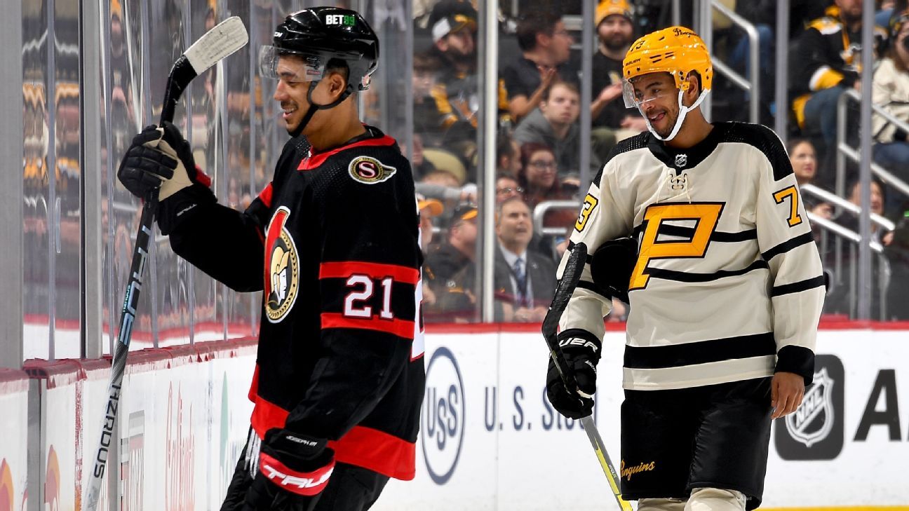Neither player recorded a point in Pittsburgh’s 4-1 win, but they did enter the box score together when they drew coincidental high-stick penalties while their parents, Frantzi Joseph and France Taillon, watched from the stands.