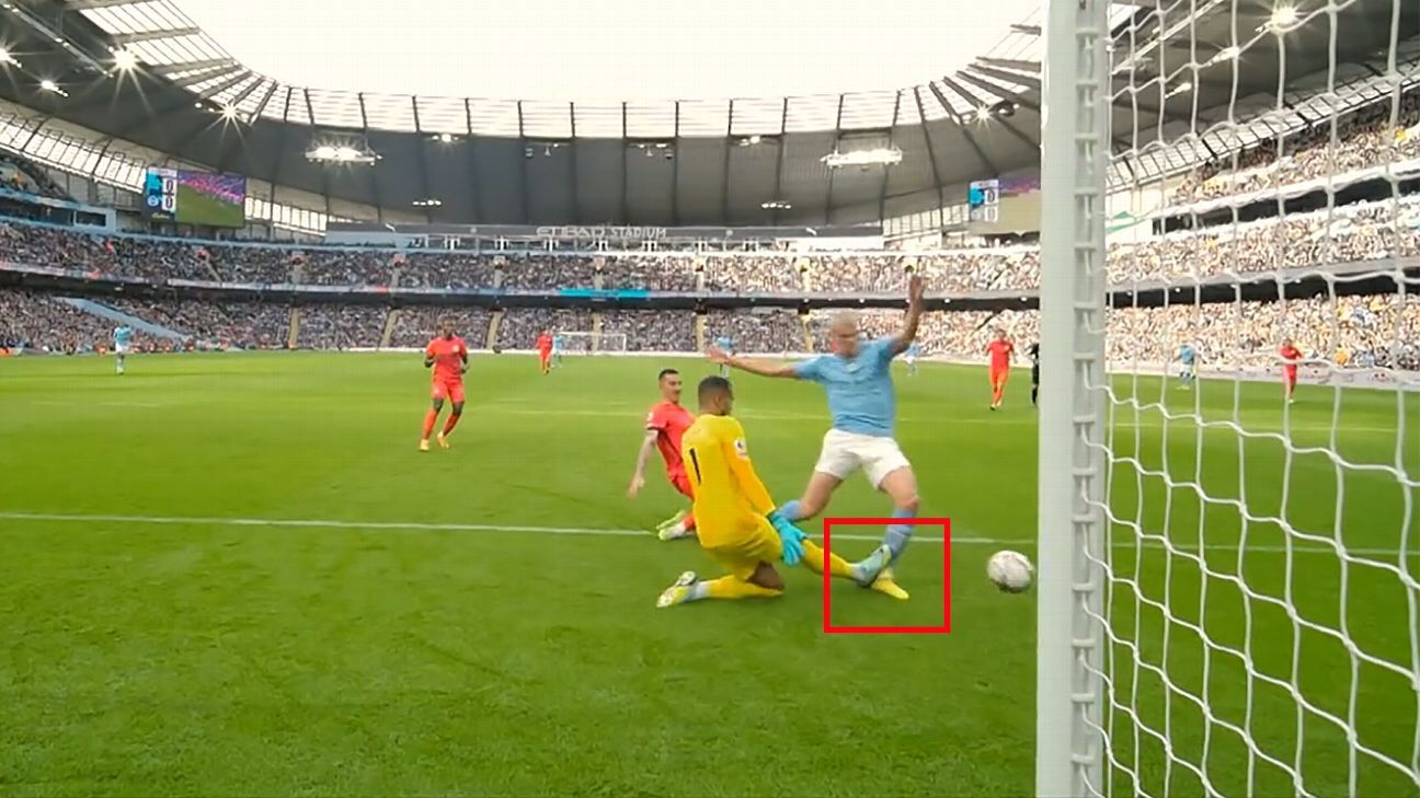 The same applies to Haaland’s challenge on Adam Webster before his first goal on Saturday. The City striker showed great strength and some referees might have given a foul at the time, but the VAR shouldn’t be disallowing a goal in situations like this.