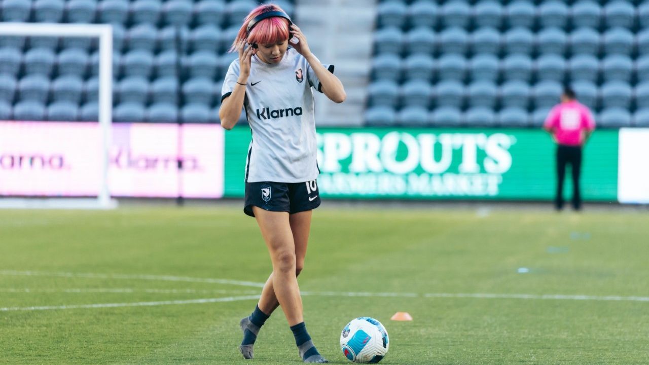 If you were to show up an hour early to an Angel City game and skip the very cool fan fest activities happening outside BMO Stadium, you could behold the vision that is Jun Endo juggling: the stadium still mainly empty, the pink-haired 22-year-old Japanese midfielder is alone on the field with headphones on, in communion with the ball. Sometimes she wears only socks.