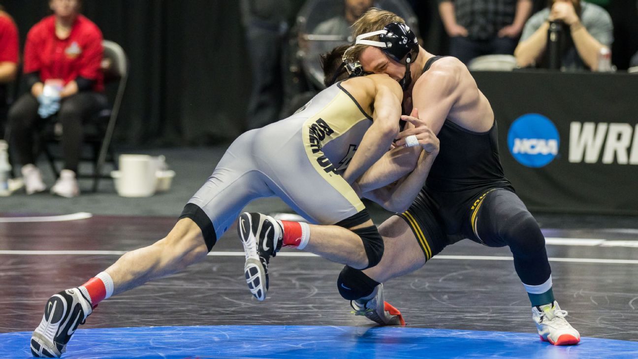 TULSA, Okla. — Purdue’s Matt Ramos pulled one of the most stunning upsets in NCAA Division I wrestling history, ending Iowa star Spencer Lee’s chase for four national titles with a pin in the closing seconds of their semifinal match Friday night.