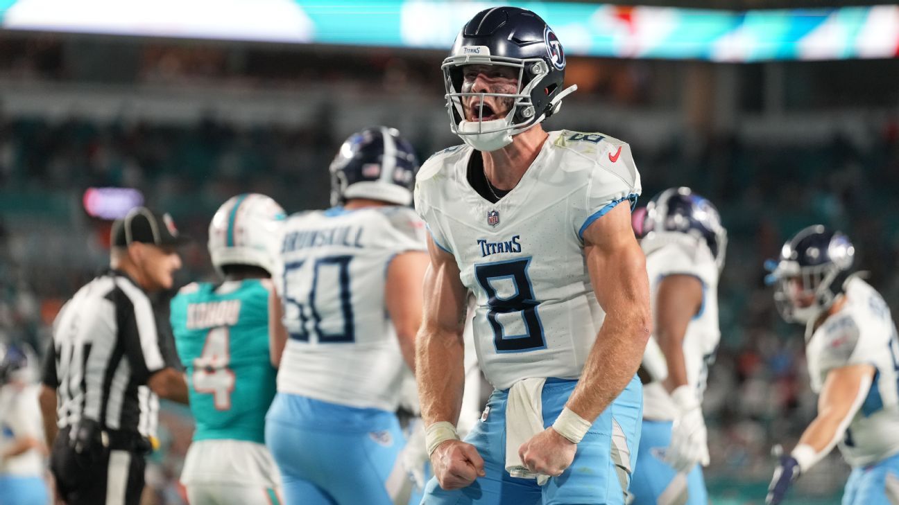 MIAMI GARDENS — The Tennessee Titans pulled off a stunner against the Dolphins on “Monday Night Football,” rallying from a 14-point deficit in the game’s closing minutes to knock Miami from the top spot in the AFC.