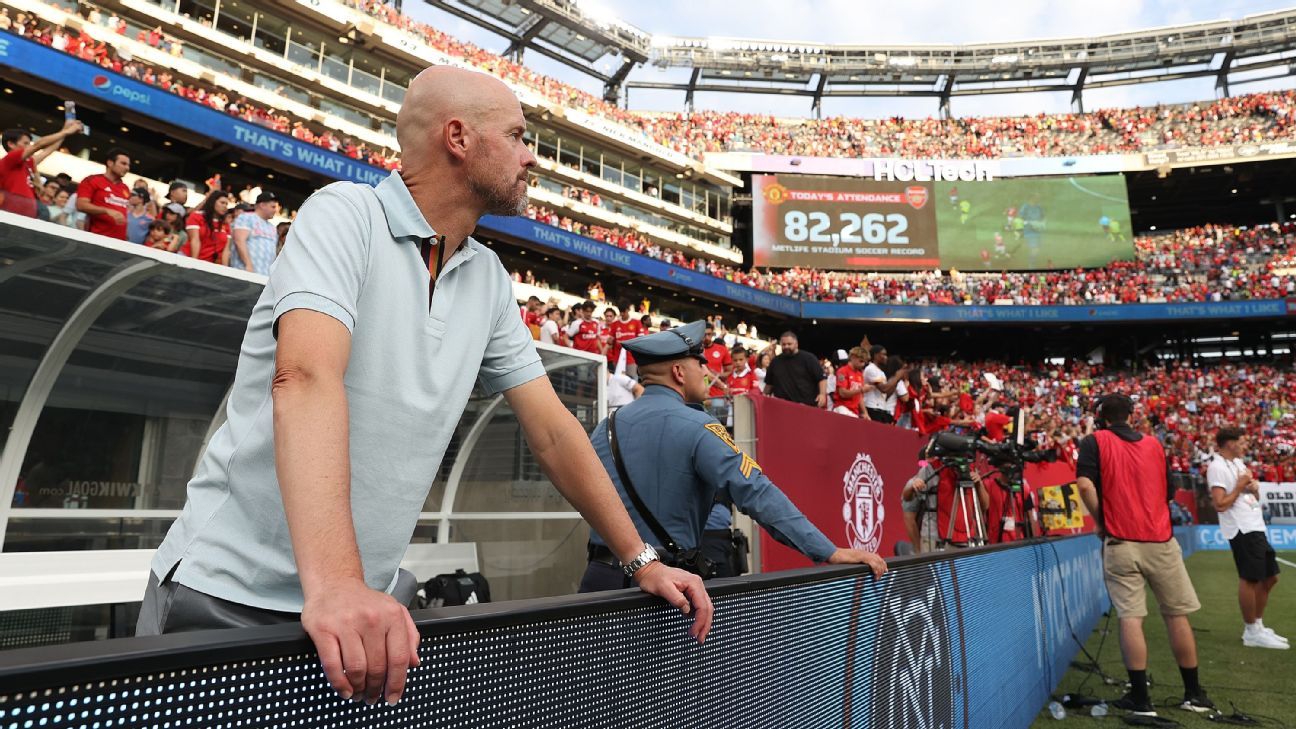 But after getting deals done early for midfielder Mason Mount (£55m) and goalkeeper Andre Onana (£50m), he has cut a relaxed figure on tour. Leaving MetLife Stadium after the Arsenal game, he was asked when he wanted a new striker to arrive by. “Last year,” he replied while laughing.