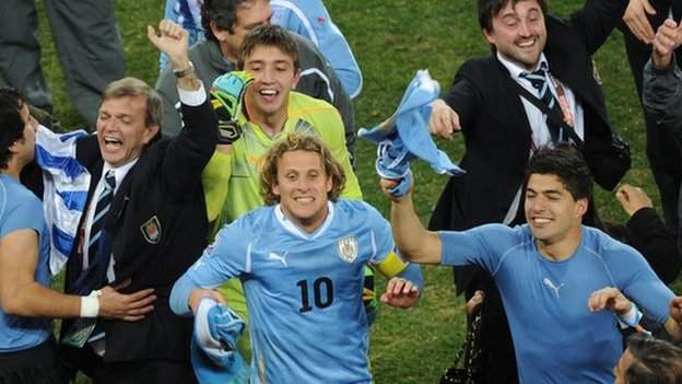 Luis Suarez was at the heart of the 2010 World Cup quarter-final between Uruguay and Ghana, the first time the two sides had met in a senior competitive football match. The striker was sent off for Uruguay after handling the ball to deny Ghana a winner in extra time. Asamoah Gyan missed the subsequent penalty and Ghana then lost 4-2 on penalties as Uruguay reached the semi-final stage for the first time since 1970.