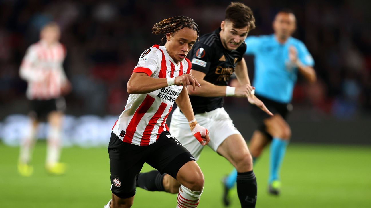 Leading the line for PSV were two of the brightest young talents in Europe in Cody Gakpo and Xavi Simons. Gakpo was heavily linked with a move to the Premier League in the summer, with Manchester United admirers along with Arsenal, Leeds and Southampton. Though he was quiet at the Emirates last week — with Takehiro Tomiyasu marking him out of the game — he was able to show more of his class tonight in front of his home support.